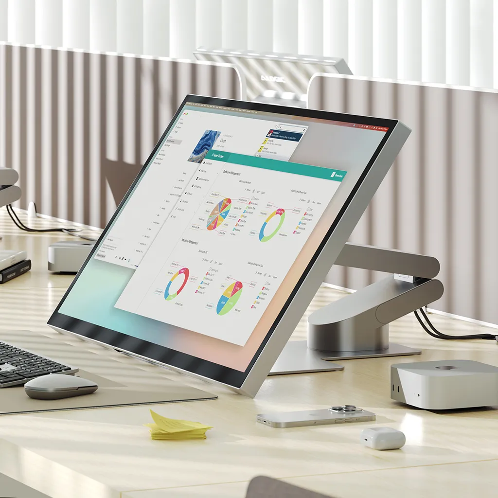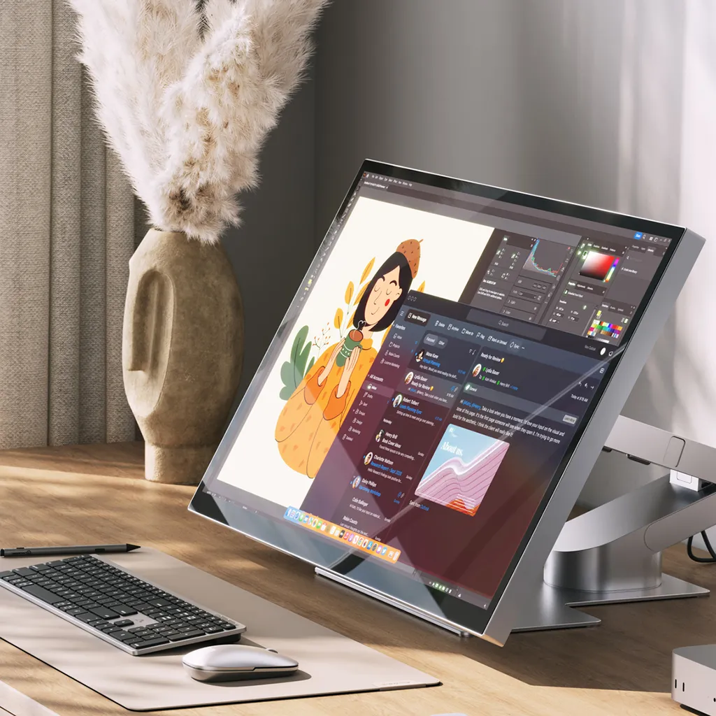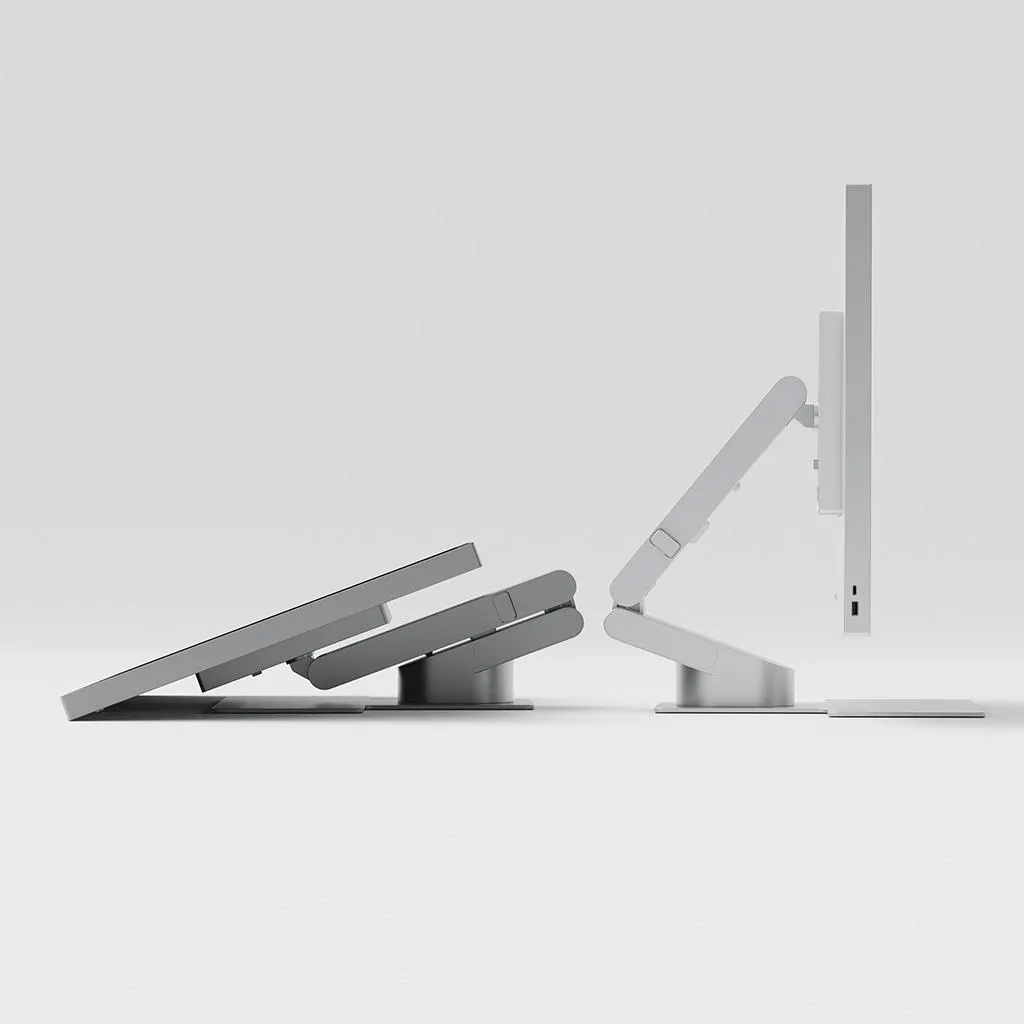 The stand is designed to let you change your setup quickly depending on the task. Keep the monitor upright for everyday productivity, then fold it down when you want a lower, more hands-on working position, without needing tools or a complicated adjustment process.