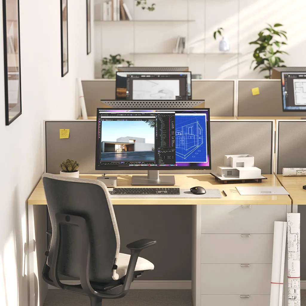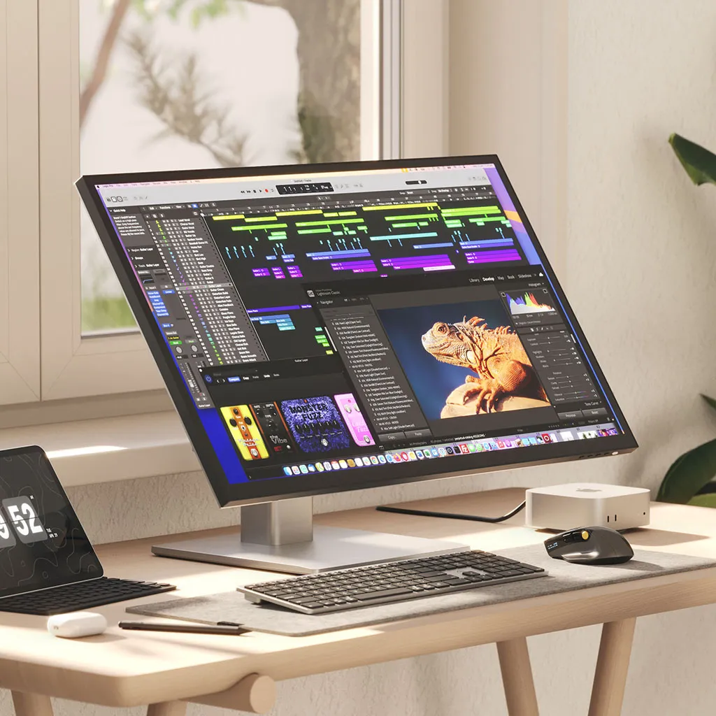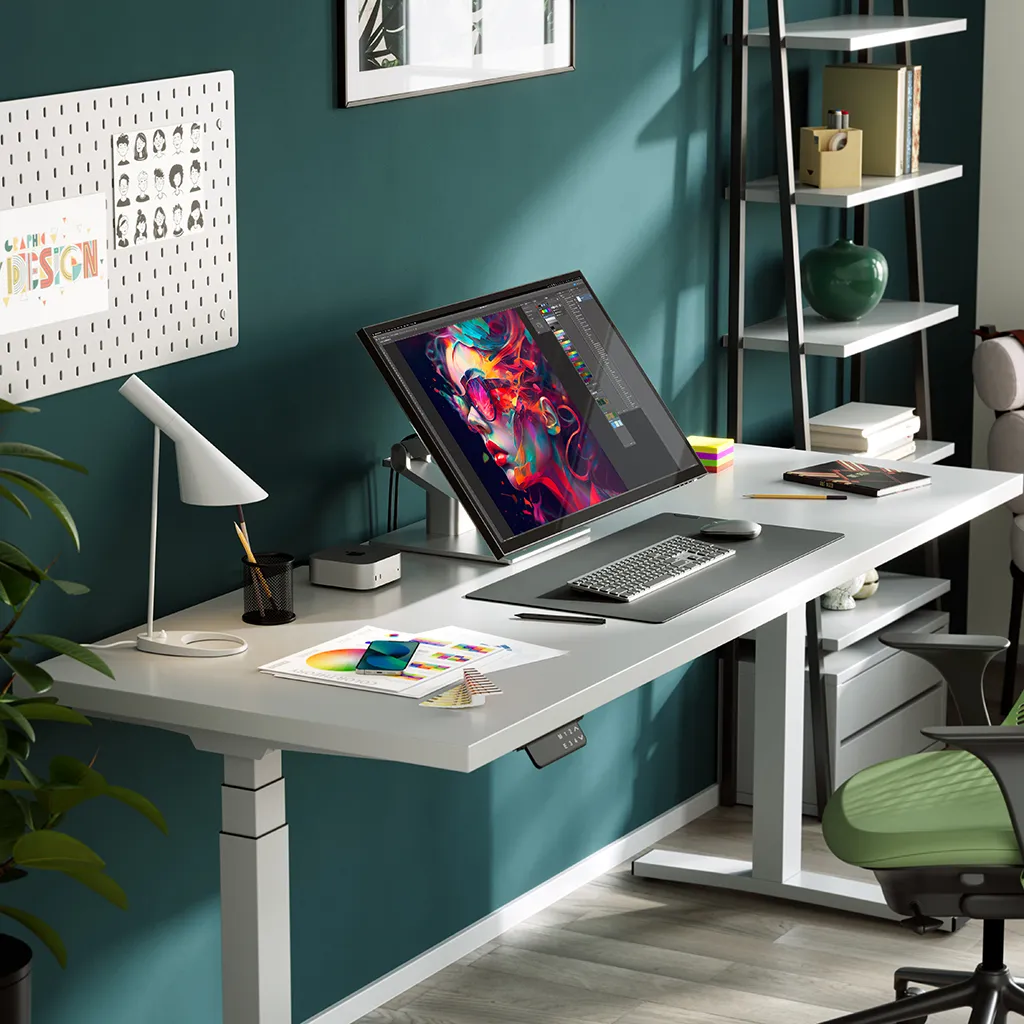Det medföljande Clarity Fold Stand gör att du direkt kan växla mellan traditionell, upprätt skärmanvändning och ett lågt, ergonomiskt skissläge där skärmen vilar nära skrivbordet, som en ritplatta. Oavsett om du skriver, ritar eller redigerar kan du hitta den mest bekväma vinkeln för långa pass. Stativets 360‑graders roterande bas gör det enkelt att vrida skärmen och visa ditt arbete för kunder, kollegor eller samarbetspartner utan att flytta hela monitorn eller ändra din sittställning.